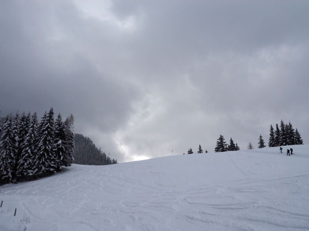 Tourengeher auf Höhe der Enzianhütte.
